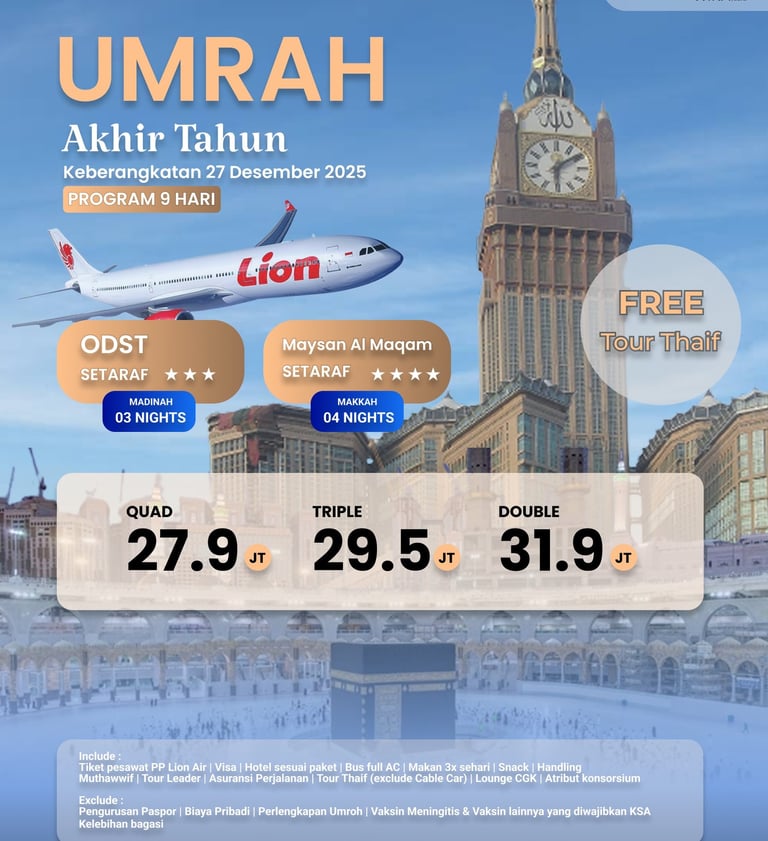UMROH PRIVATE 12D BY LION AIR 19 OKTOBER S/D 30 OKTOBER 2023
